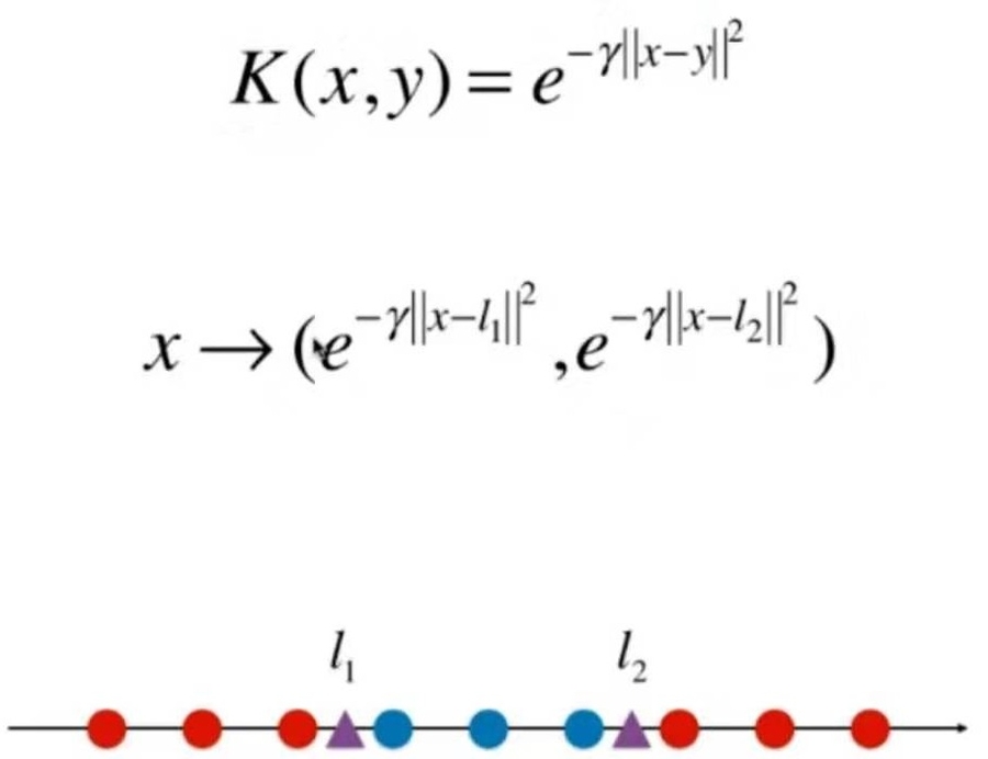 在这个例子中,使用图中的公式2来对x做映射,公式中的l1和l2是地标。