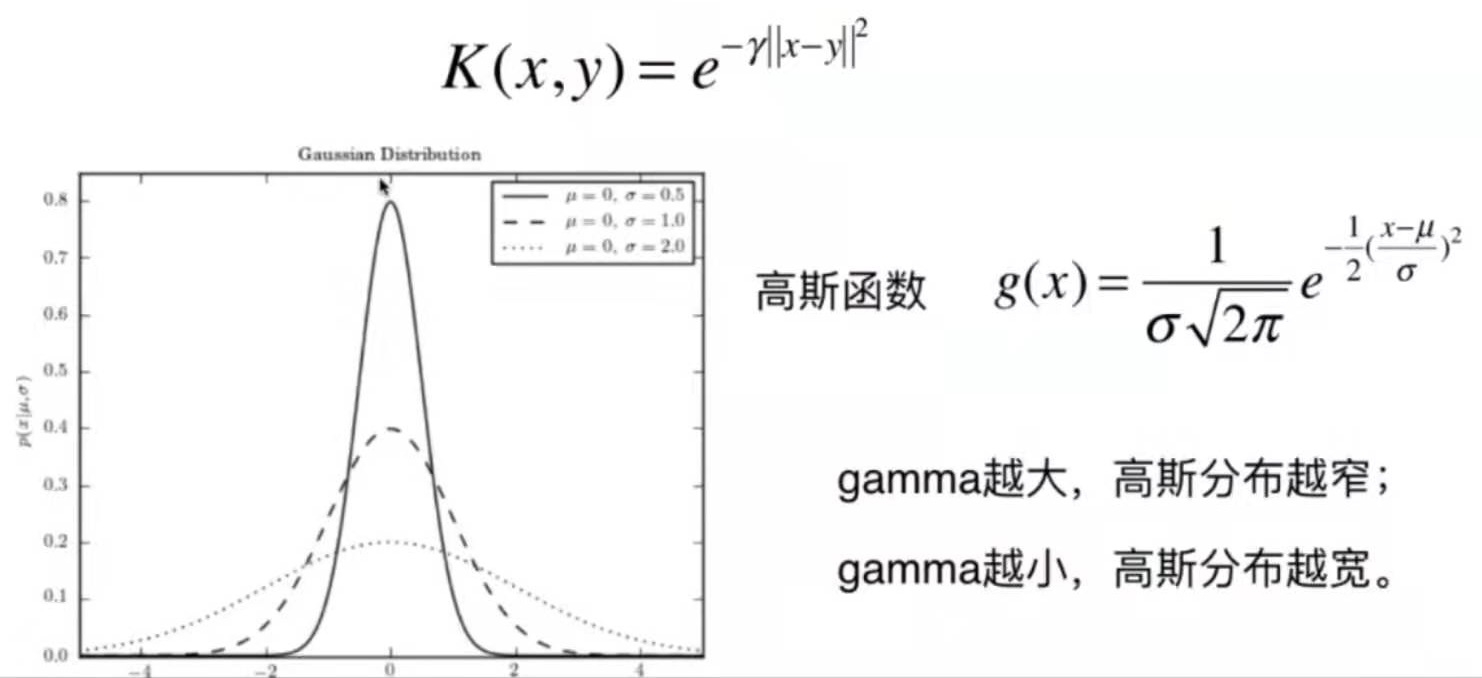 可以把训练的效果看成是俯视这些样本点。某一类的每个样本点形成了一个以它为中心的正态分布。 gamma越大,这个分布的圈就越小。