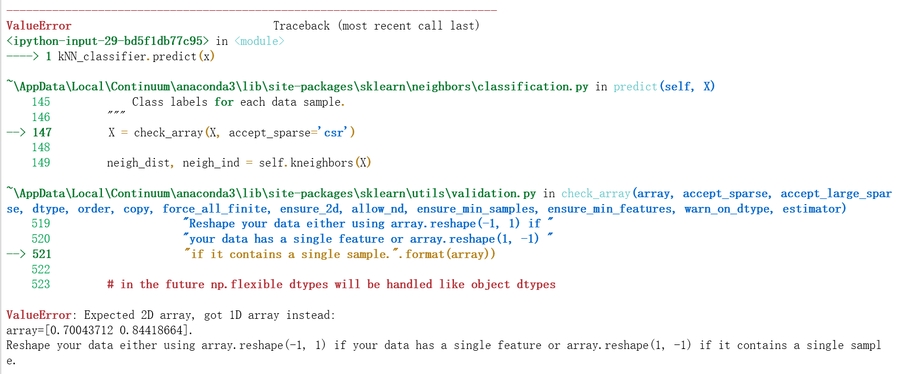 kNN_classifier.predict(x)这样写会报错: