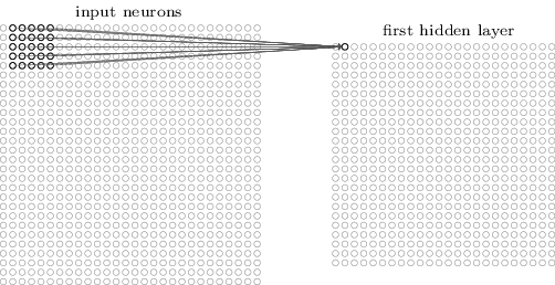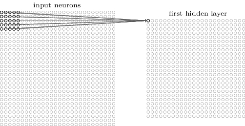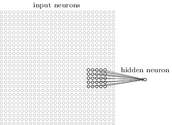 最左上角的一个local receptive field对应下一层第一个神经元。